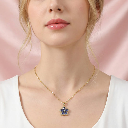 Blue Flower Stainless Steel Necklace