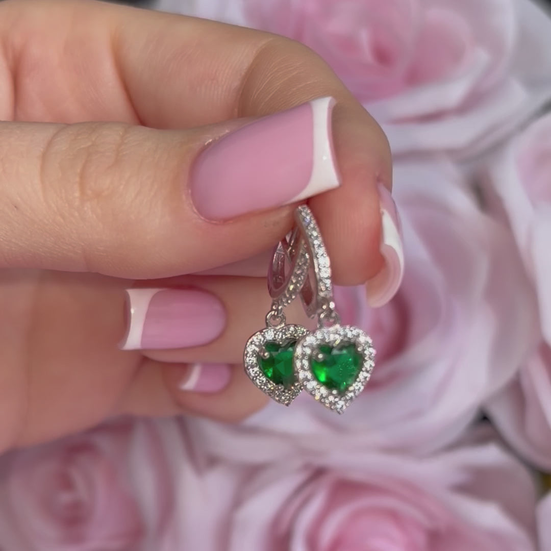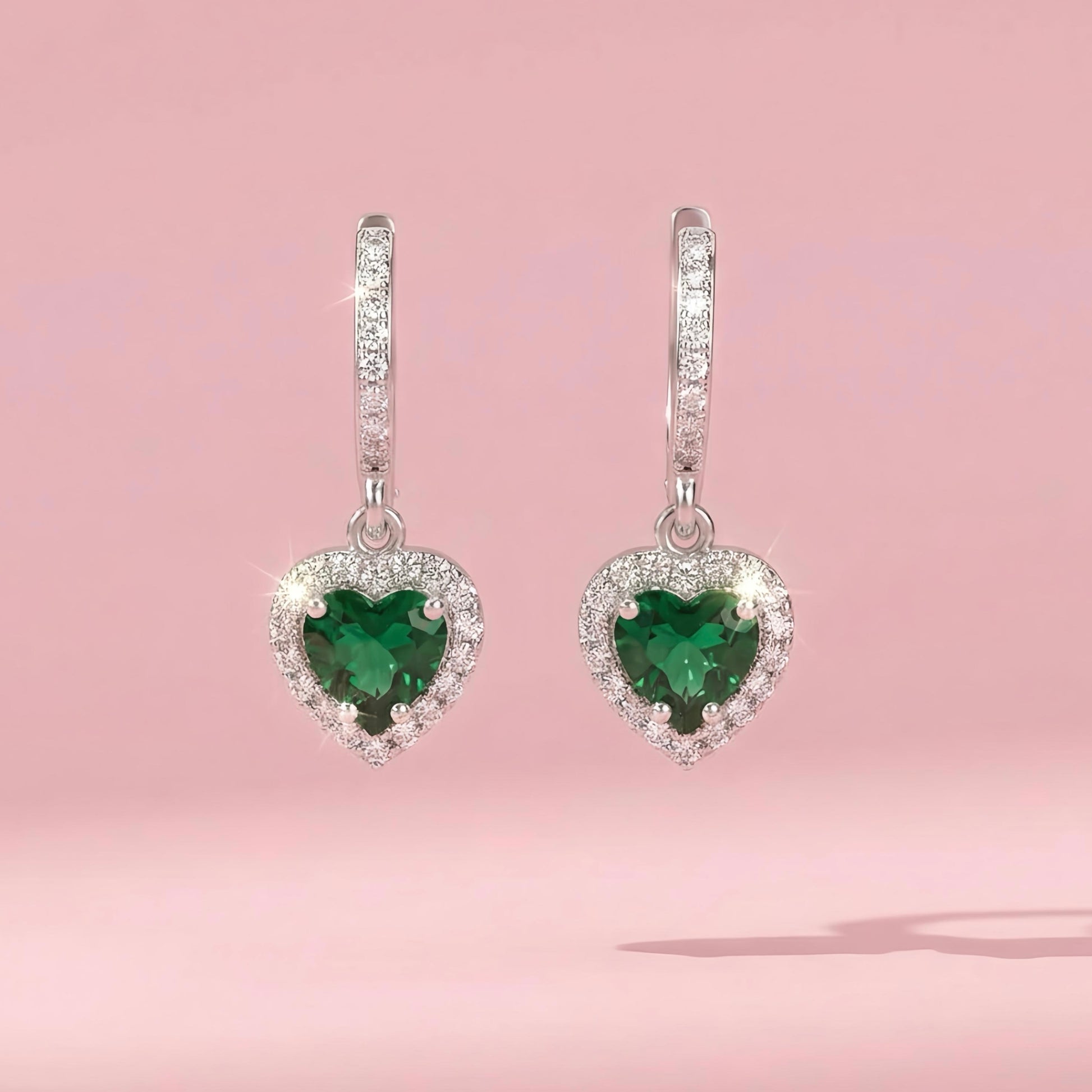 Fall in love with every sparkle of these elegant heart-shaped earrings. The deep green gemstone surrounded by shimmering zircons brings the perfect balance of luxury and romance. A timeless piece for any occasion — or a meaningful gift for someone special.