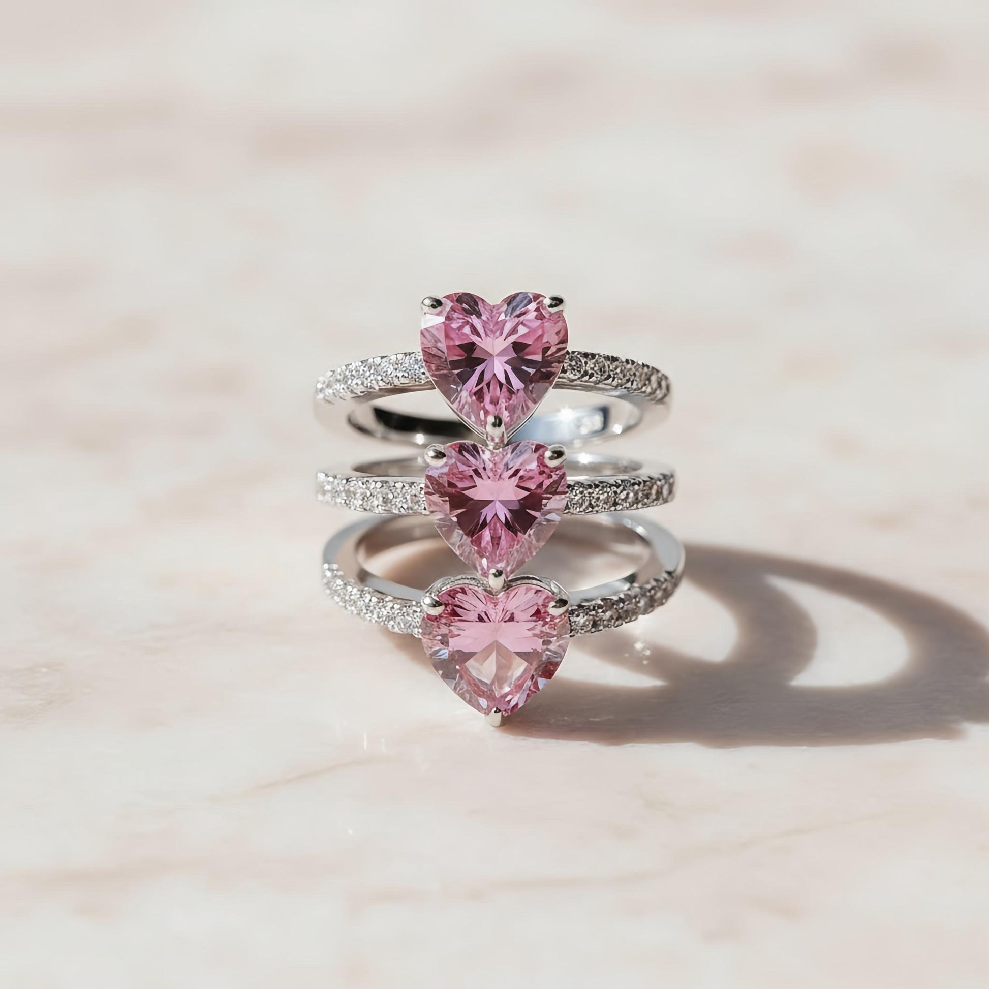 Celebrate love and beauty with our Heart-Shaped Sterling Silver Ring, a timeless piece designed to add a touch of romance to any look. Featuring a brilliant heart-cut cubic zirconia stone in your choice of pink or clear white, this ring captures the essence of elegance and passion.