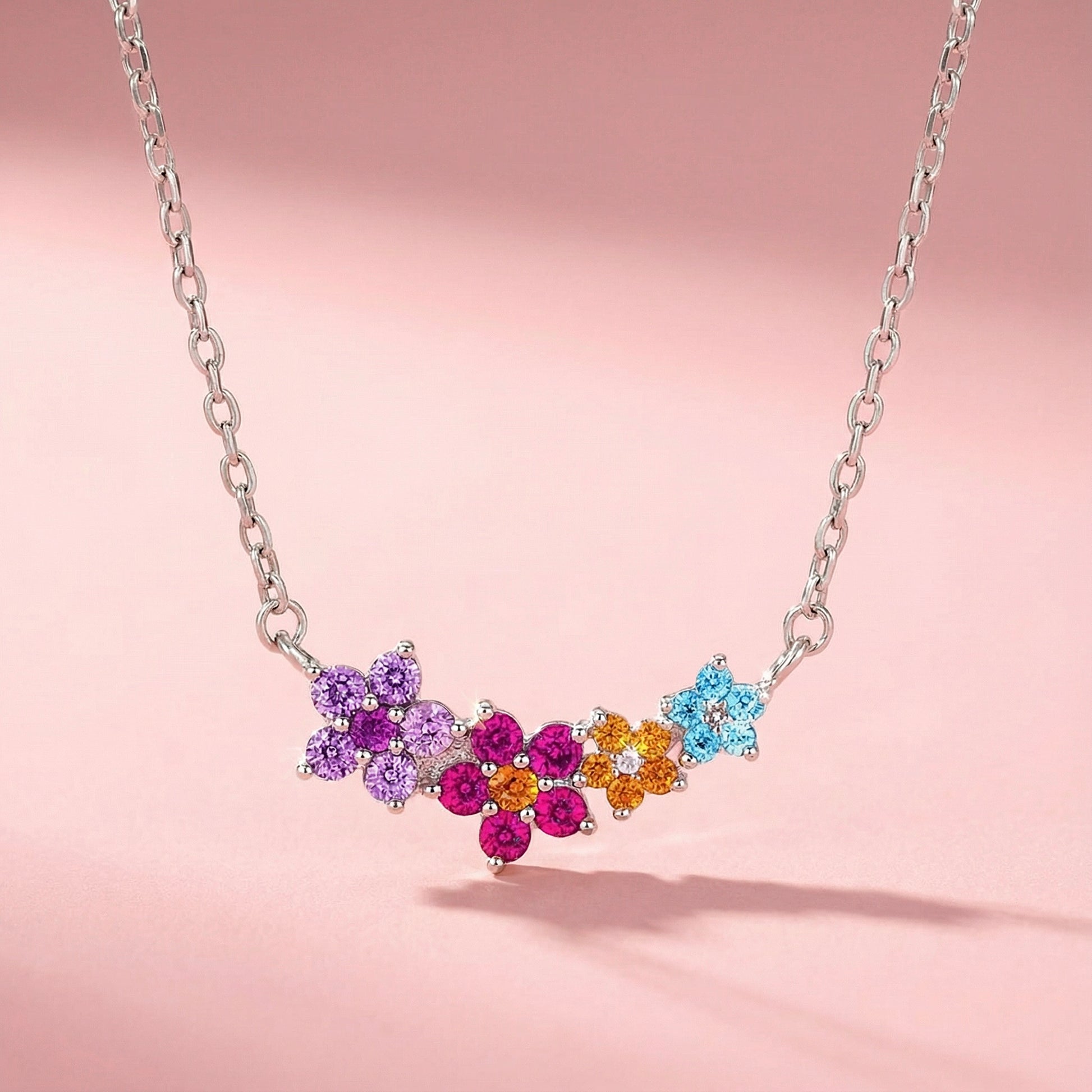 Bring color and joy to your outfit with this playful necklace featuring multicolor zircon flowers — the perfect piece to brighten any day! 🌸