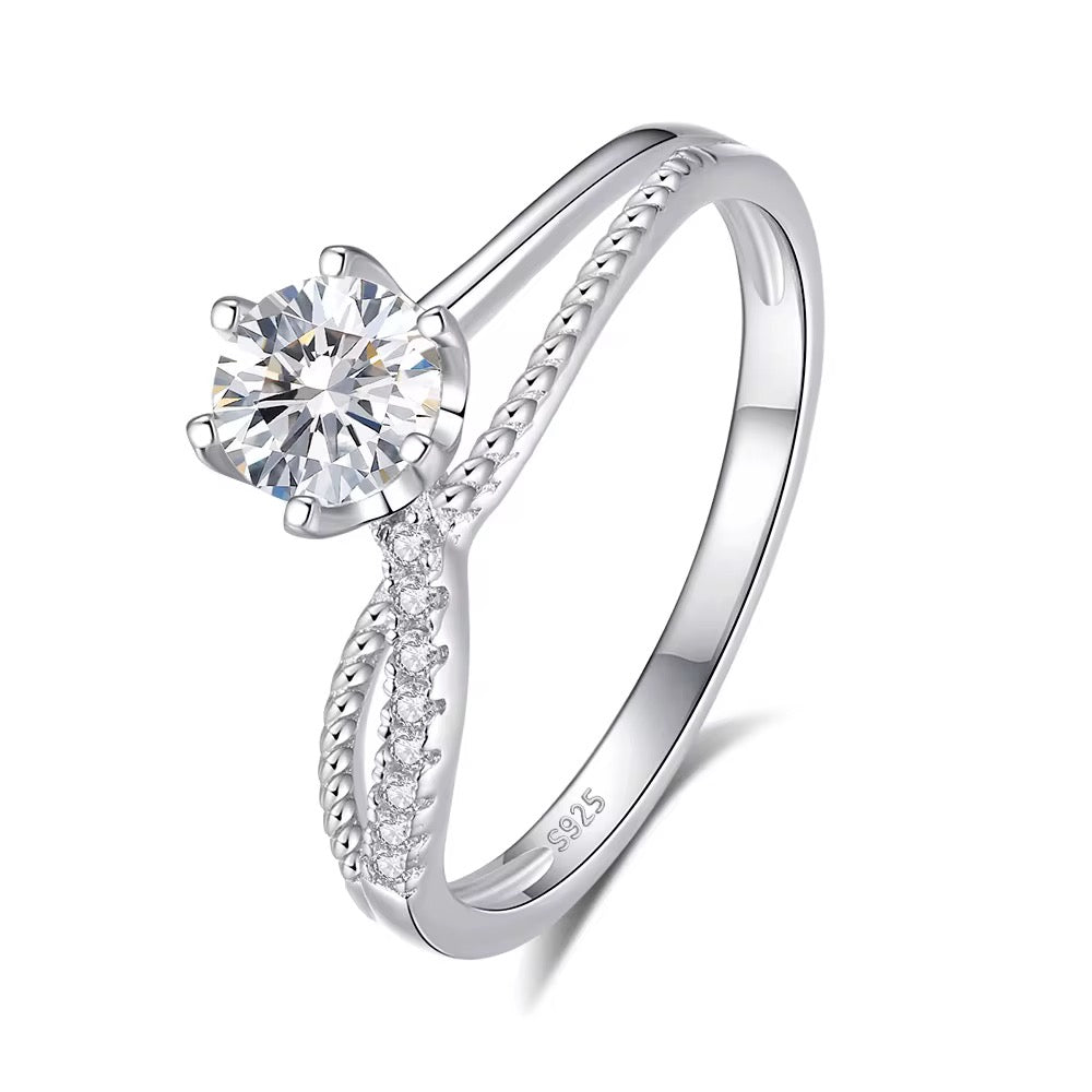 This breathtaking piece features a brilliant round-cut cubic zirconia center stone, delicately set on a twisted band adorned with small shimmering stones for extra sparkle. Crafted from high-quality 925 sterling silver, this ring is not only stunning but also durable and hypoallergenic, making it perfect for daily wear.